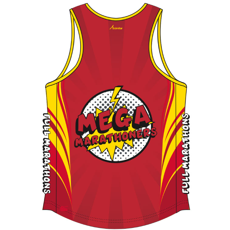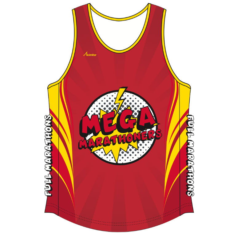 Striking red Mega Marathoners Full Marathon Vest!