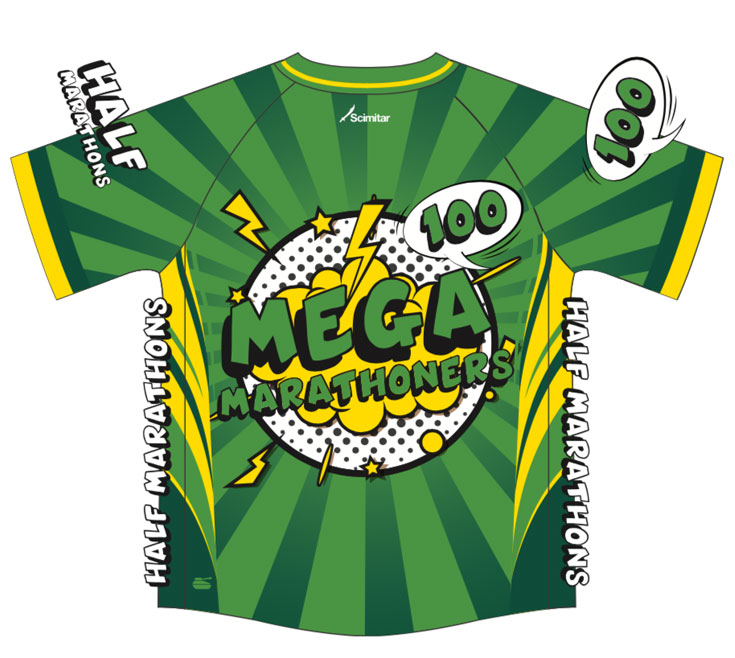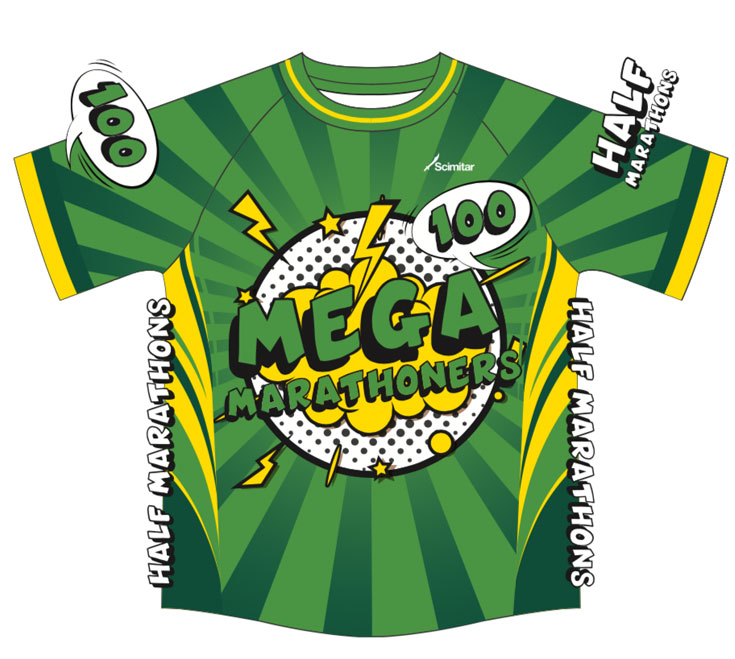 Striking green Mega Marathoners Half Marathon Short Sleeved Shirt!