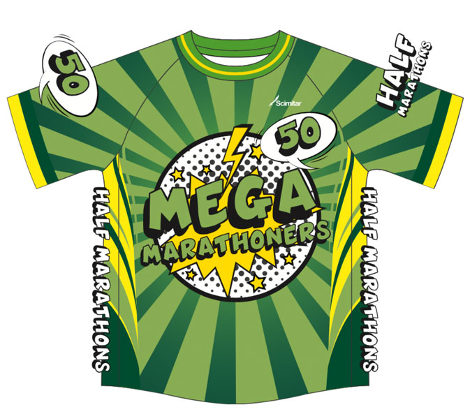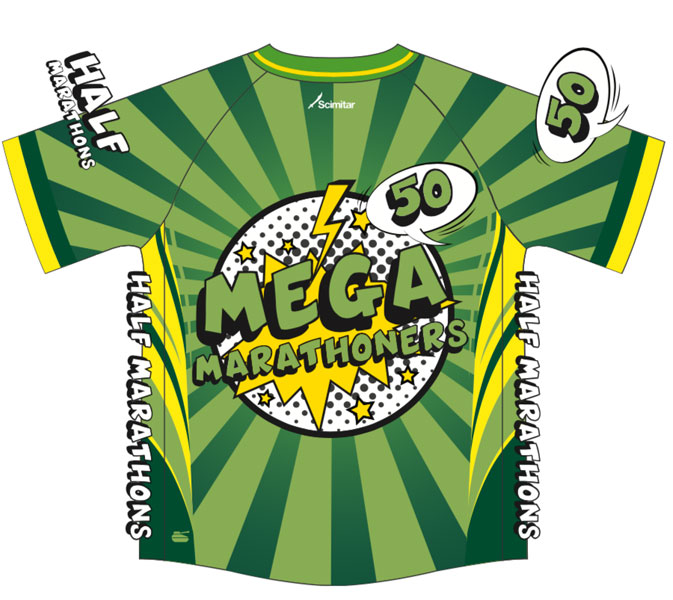 Striking green Mega Marathoners Half Marathon Short Sleeved Shirt!