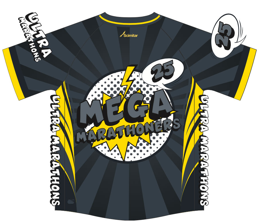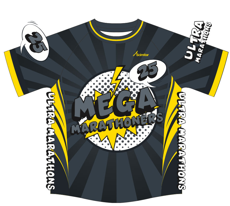 Striking grey/black Mega Marathoners Ultra Marathon Short Sleeved Shirt!